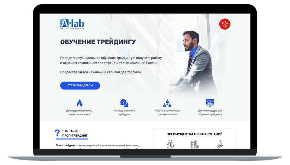 Школа Трейдинга А-Лаб обучает и трудоустраивает трейдеров. Компании необходимо было увеличить маржинальный доход из онлайн-каналов. На момент обращения к нам у школы был устаревший сайт и реклама в Яндекс.Директ, которая не приносила желаемых результатов.